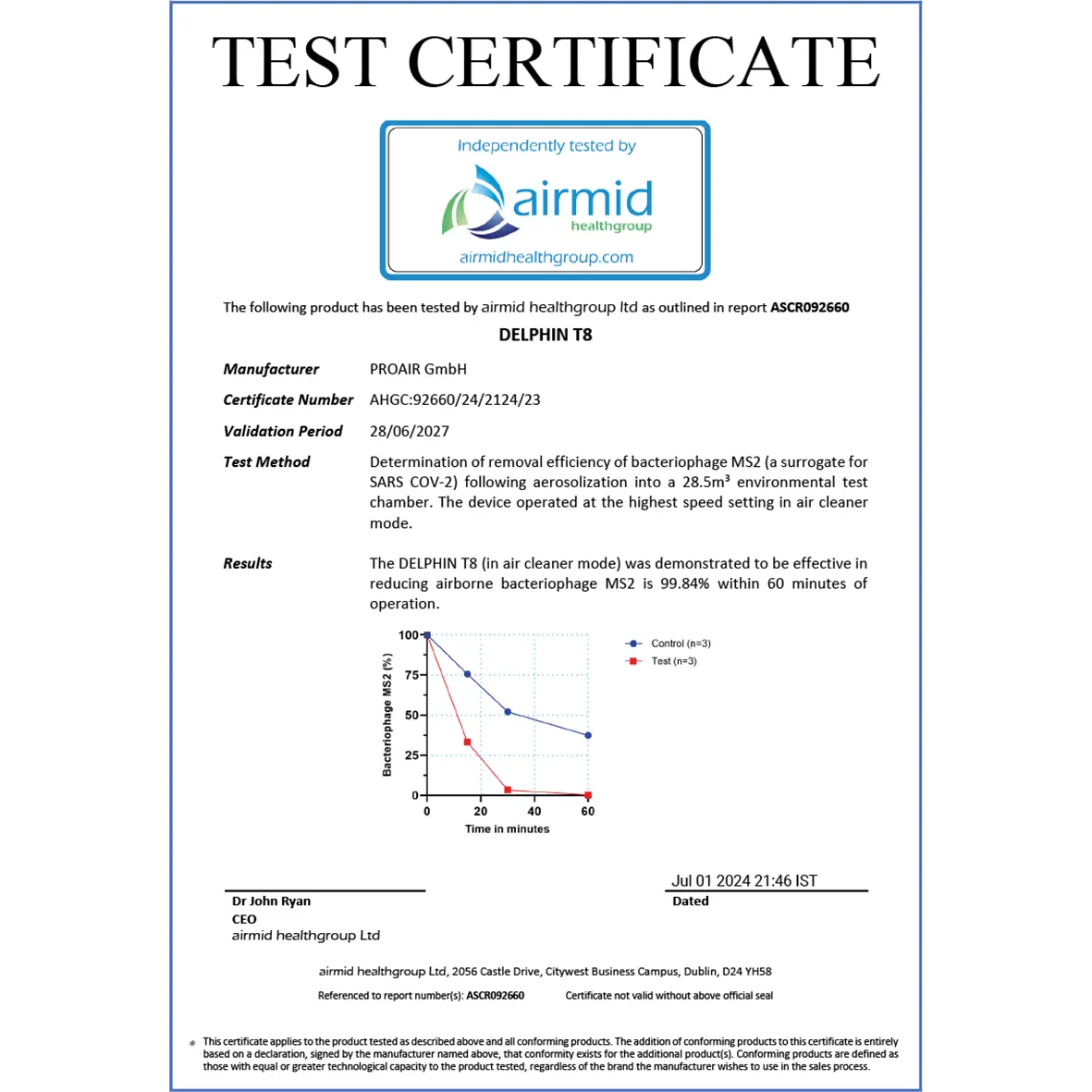 Effektive Luftreinigung: Entfernt nachweislich 99,84 % der Coronaviren aus der Luft.